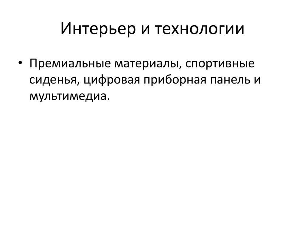 Интерьер и технологии• Премиальные материалы, спортивные
