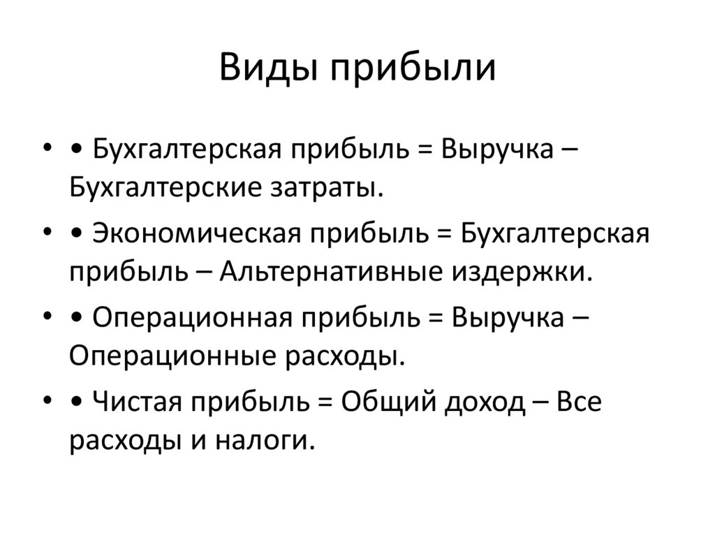 Виды прибыли• • Бухгалтерская прибыль = Выручка –