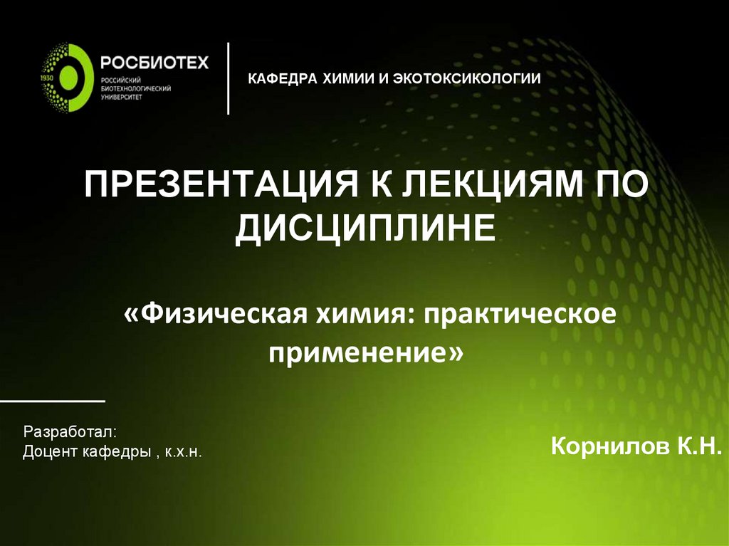 1. ПРЕЗЕНТАЦИЯ К ЛЕКЦИЯМ ПО ДИСЦИПЛИНЕ «Физическая химия: практическое применение»