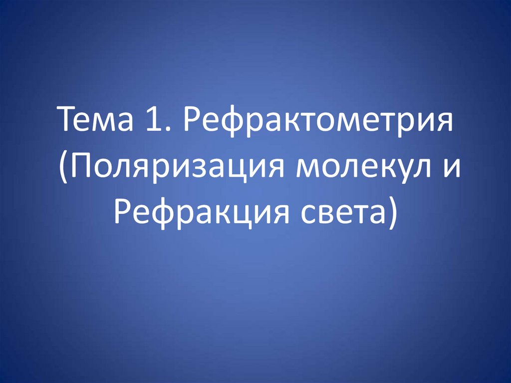 Тема 1. Рефрактометрия(Поляризация молекул и