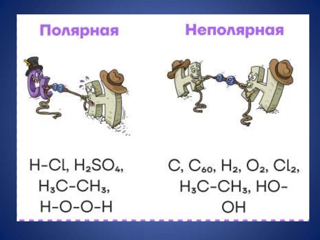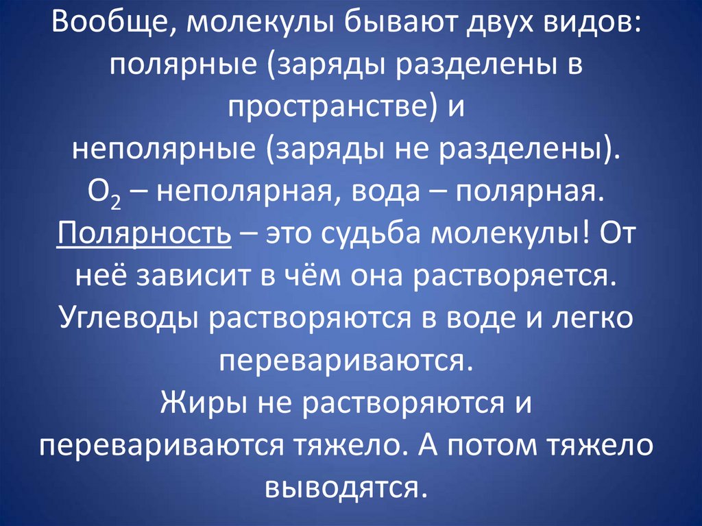 Вообще, молекулы бывают двух видов:полярные (заряды разделены в