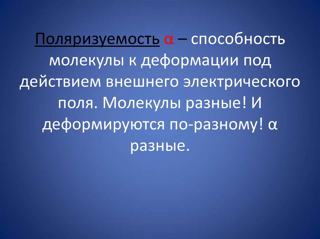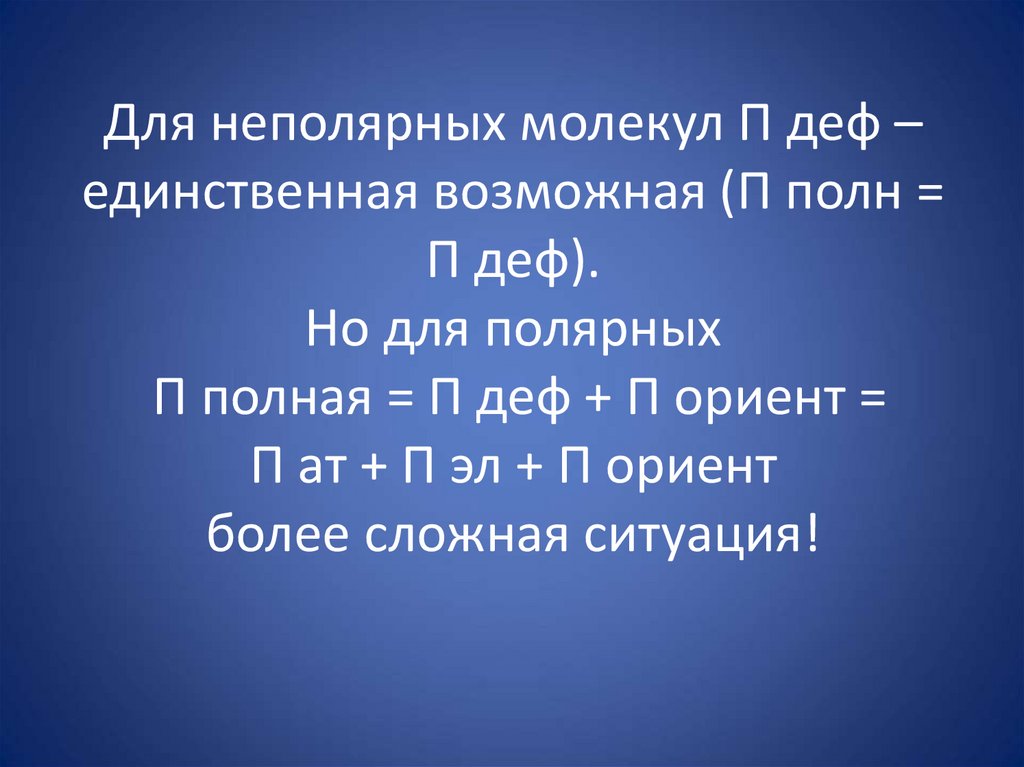 Для неполярных молекул П деф –единственная возможная (П полн =