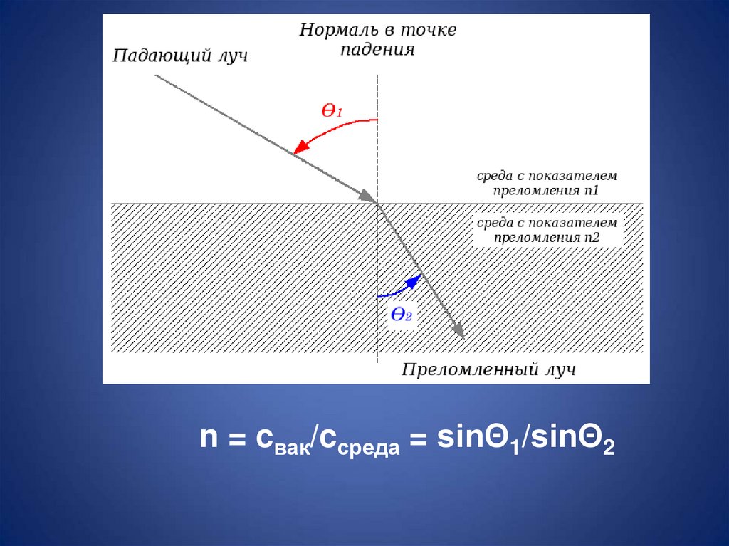 n = cвак/cсреда = sinΘ1/sinΘ231.