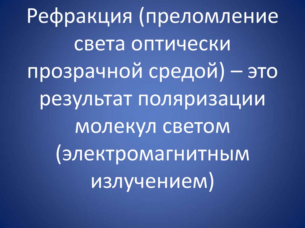 Рефрактометрия (Поляризация молекул и Рефракция света)