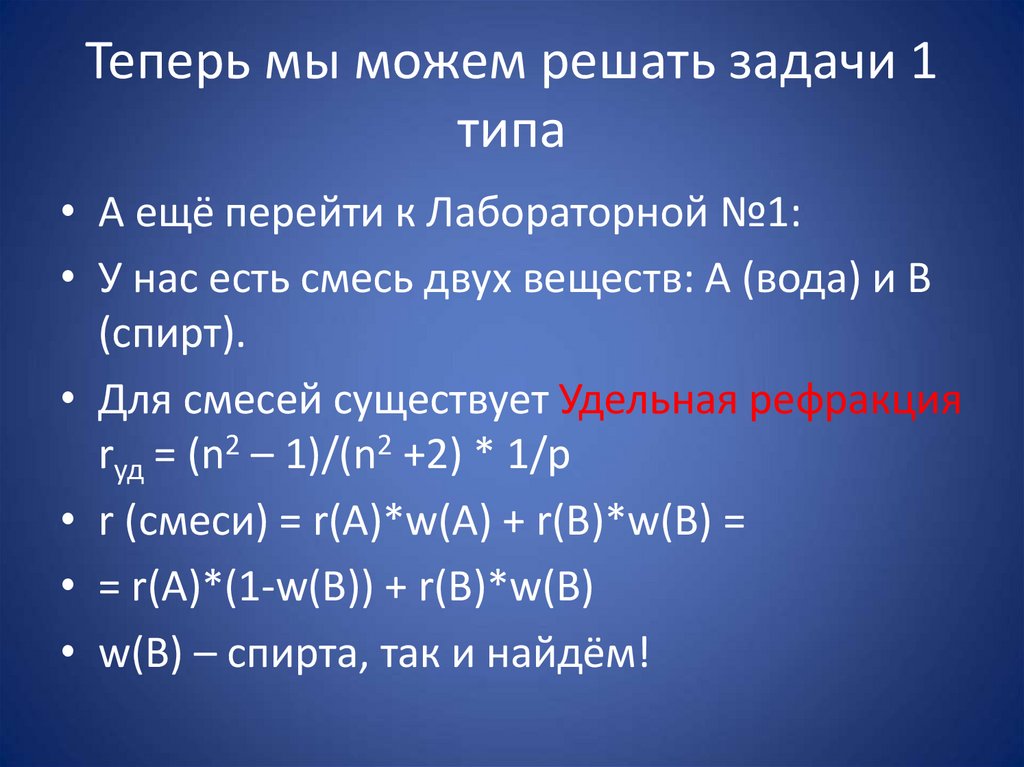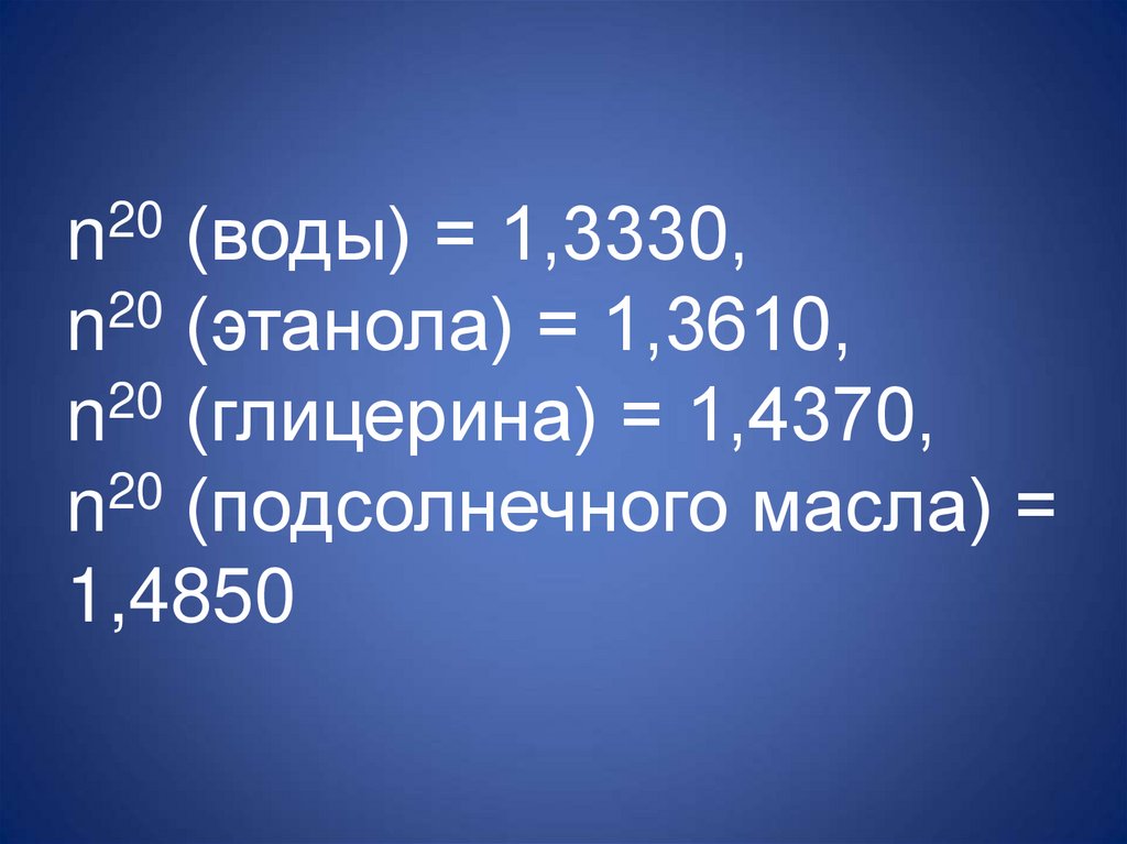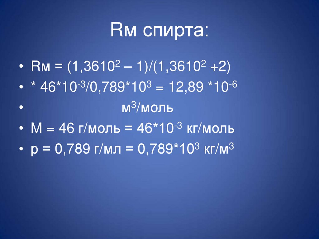 Rм спирта:• Rм = (1,36102 – 1)/(1,36102 +2)