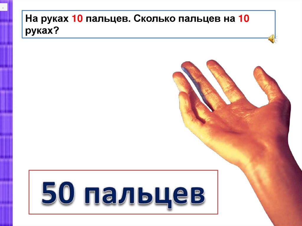 .На руках 10 пальцев. Сколько пальцев на 10