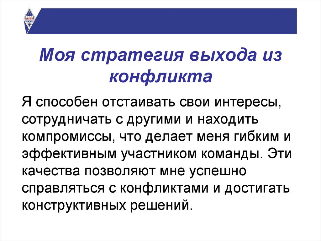 Я способен отстаивать свои интересы,сотрудничать с другими и находить