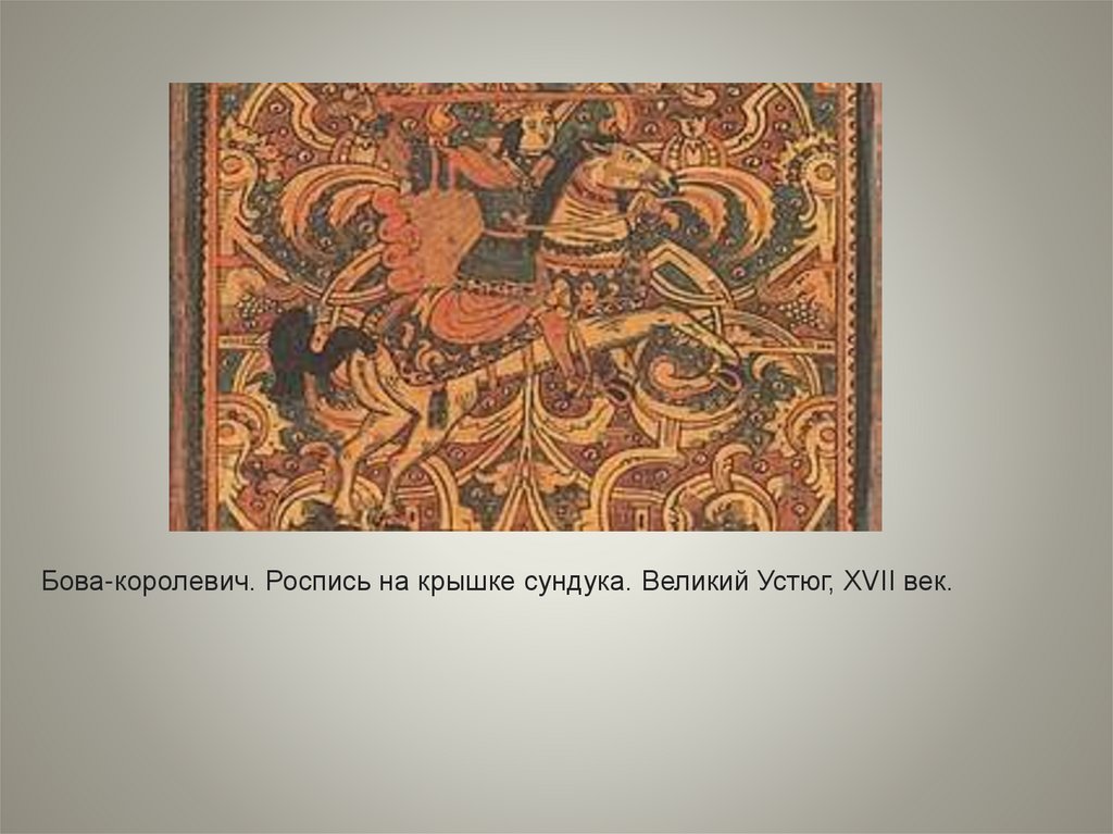 Бова-королевич. Роспись на крышке сундука. Великий Устюг, XVII век.3.
