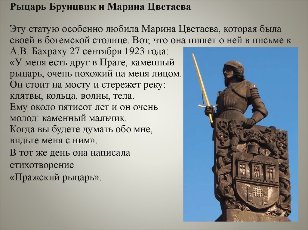 Рыцарь Брунцвик и Марина ЦветаеваЭту статую особенно любила Марина Цветаева, которая была