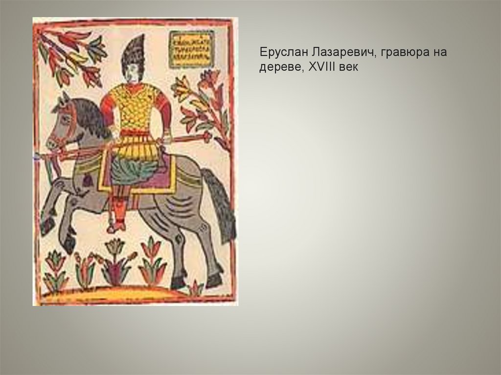 Еруслан Лазаревич, гравюра надереве, XVIII век
