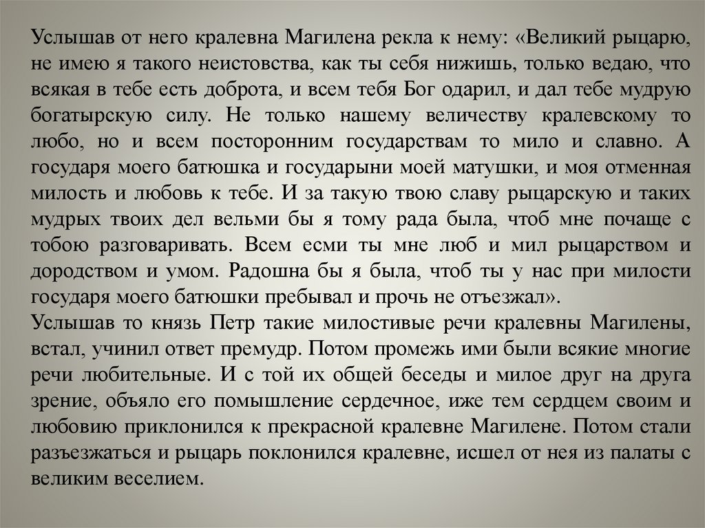 Услышав то князь Петр такие милостивые речи кралевны Магилены,