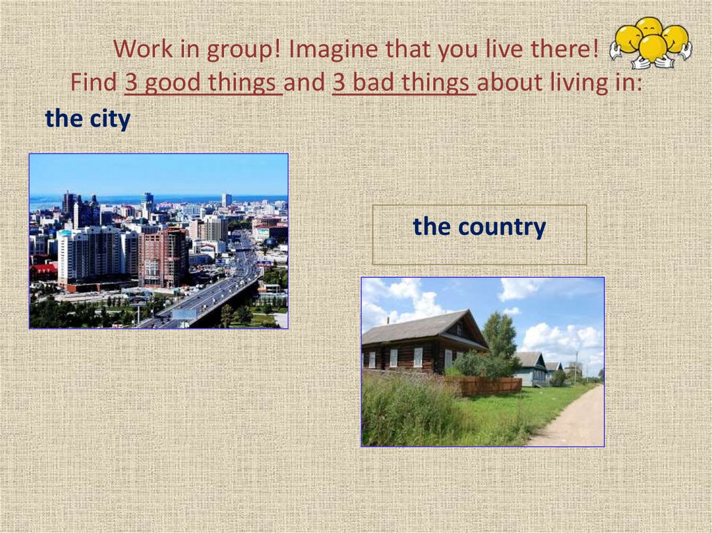 Work in group! Imagine that you live there!Find 3 good things and 3 bad things about living in: