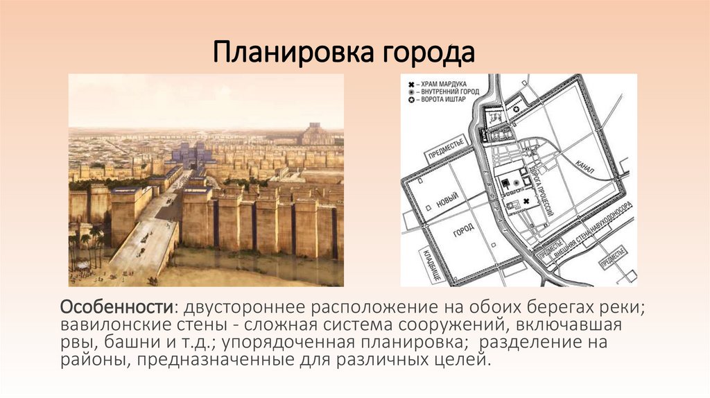 рвы, башни и т.д.; упорядоченная планировка; разделение на