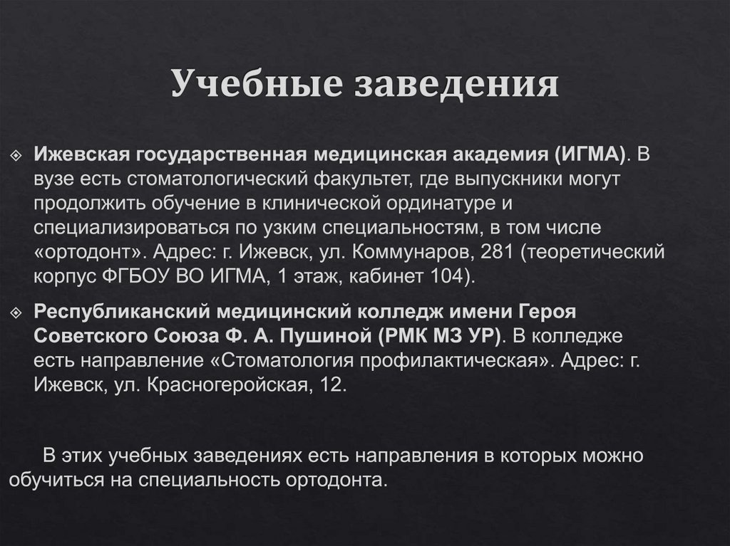 2. Найти информацию о заведениях для поступления;