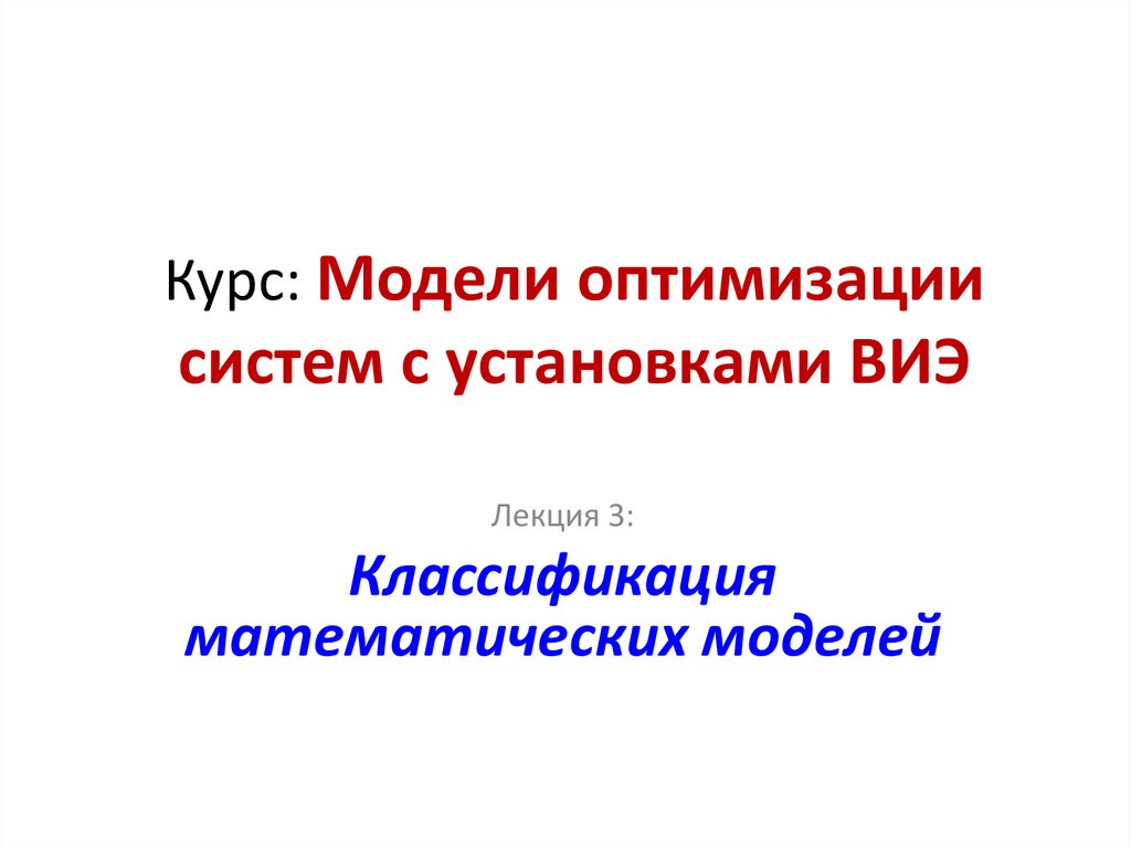 Курс: Модели оптимизациисистем с установками ВИЭ