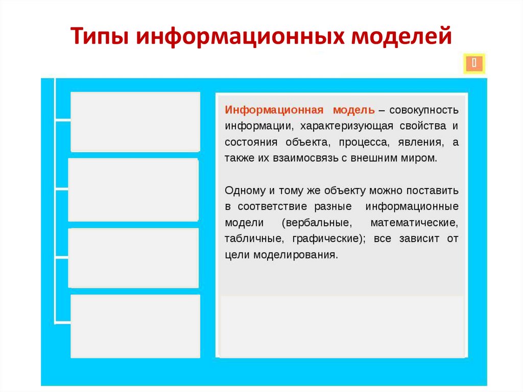 Типы информационных моделейВЕРБАЛЬНЫЙ[лат. verbalis] - устный,
