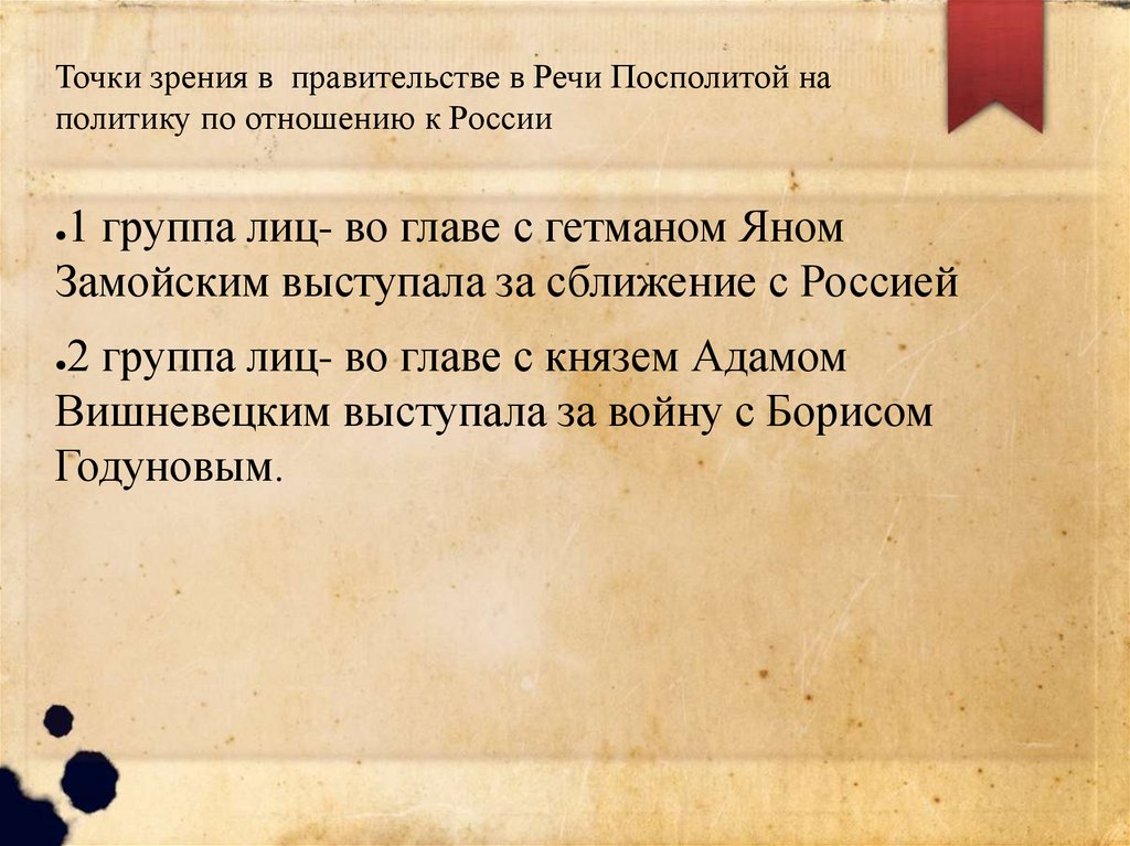 Точки зрения в правительстве в Речи Посполитой наполитику по отношению к России