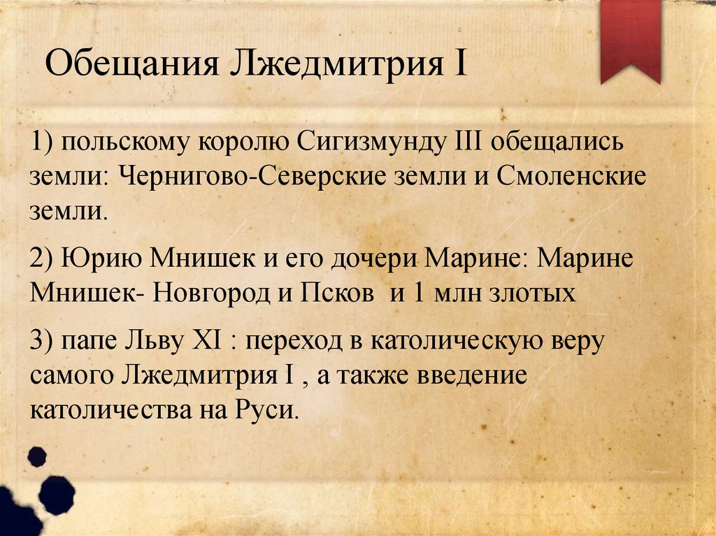 Обещания Лжедмитрия I1) польскому королю Сигизмунду III обещались