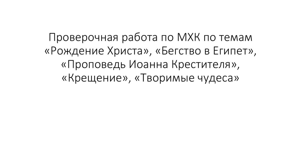 Проверочная работа по МХК по темам«Рождение Христа», «Бегство в Египет»,