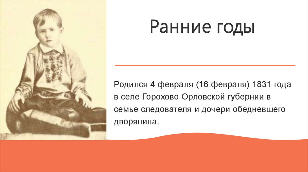 Ранние годыРодился 4 февраля (16 февраля) 1831 года