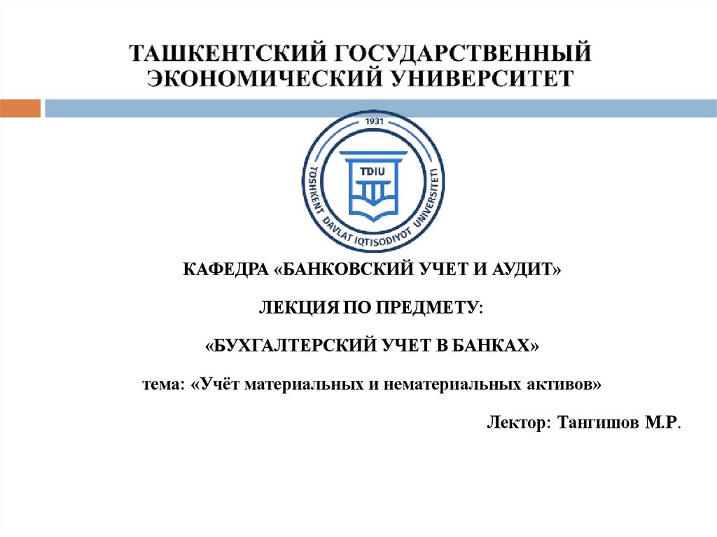 КАФЕДРА «БАНКОВСКИЙ УЧЕТ И АУДИТ»ЛЕКЦИЯ ПО ПРЕДМЕТУ: