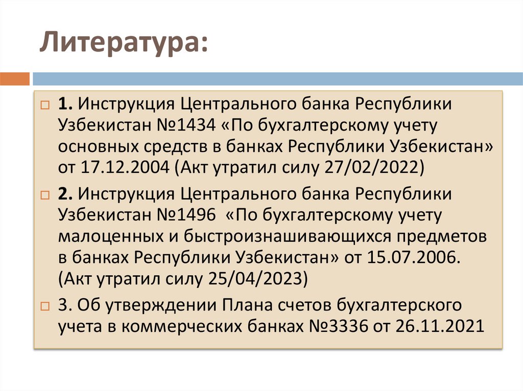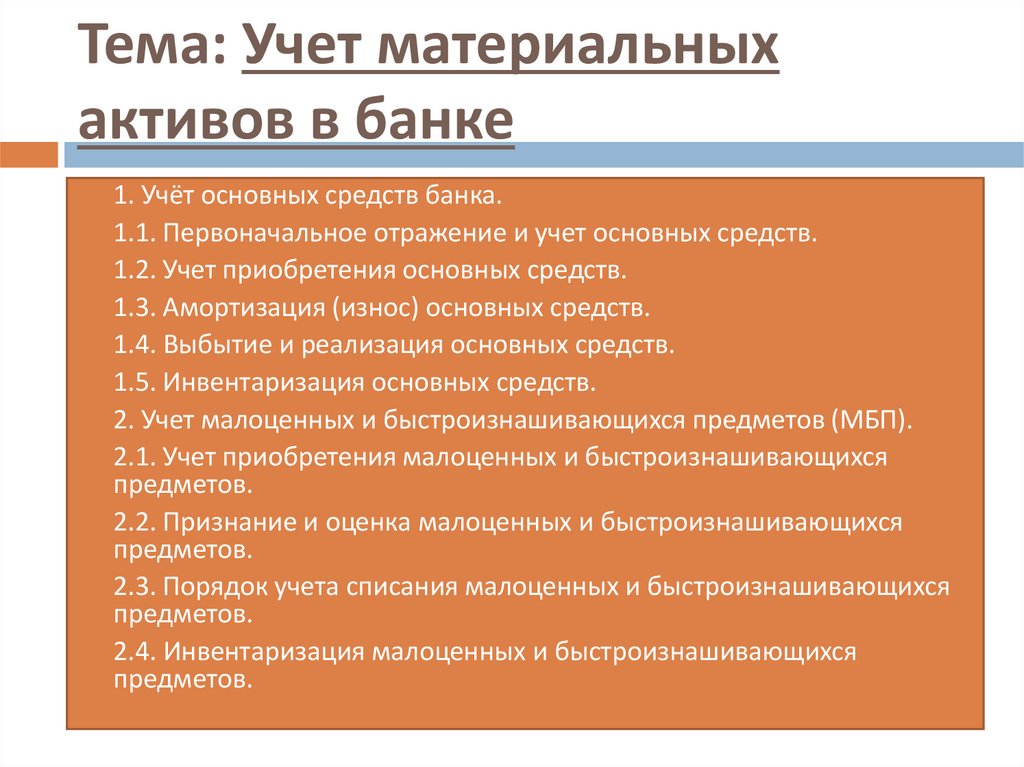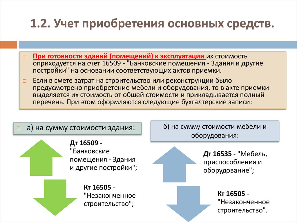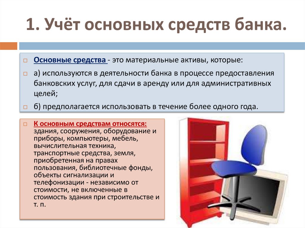 1. Учёт основных средств банка.Основные средства - это материальные активы, которые: