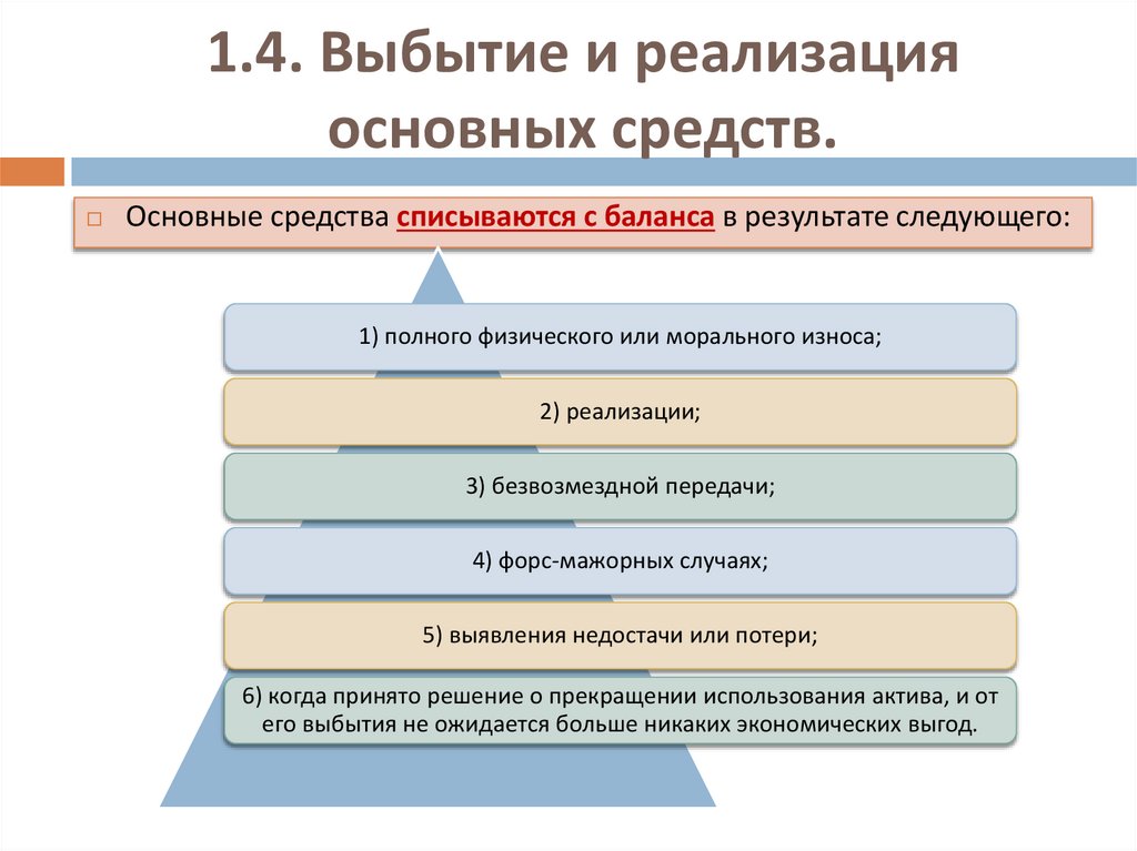 безвозмездной передаче и в форс-мажорных случаях списывается в