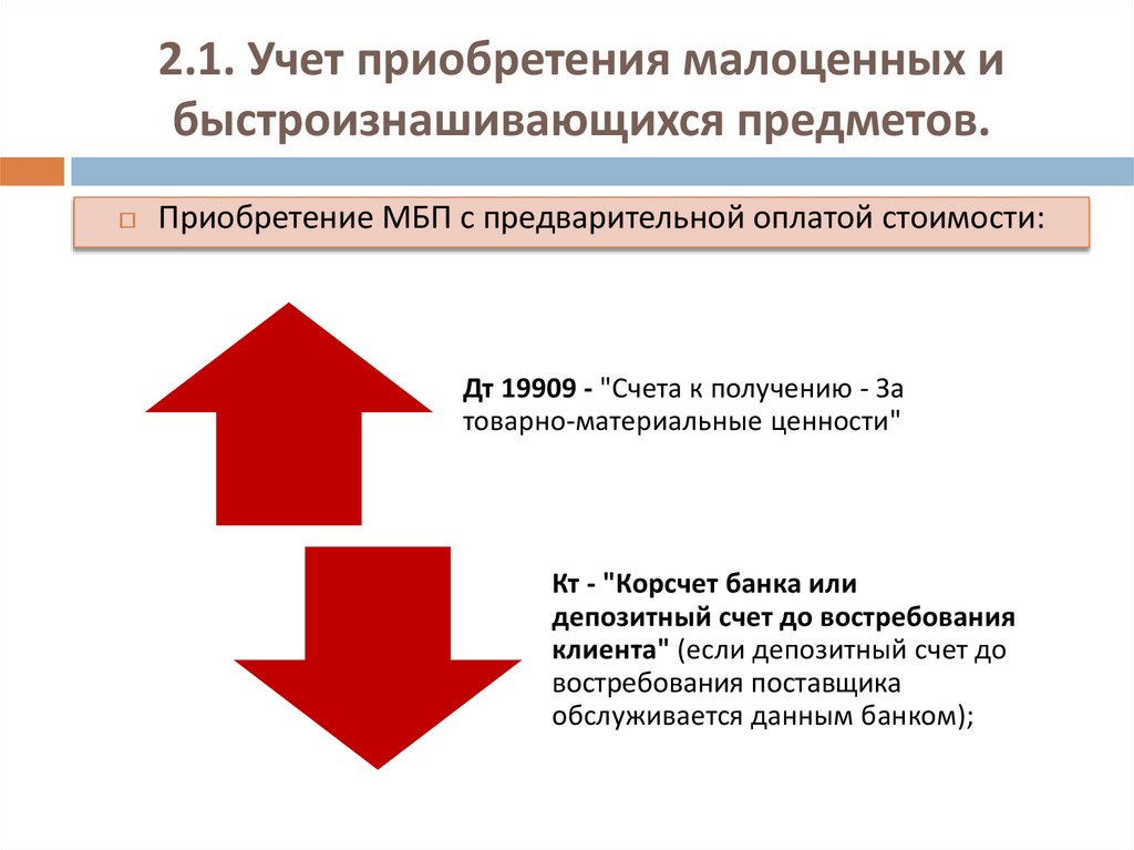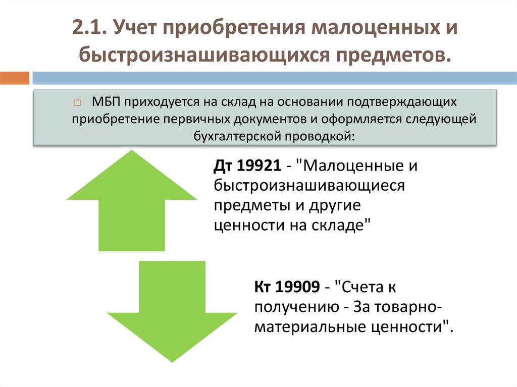2.1. Учет приобретения малоценных и быстроизнашивающихся
