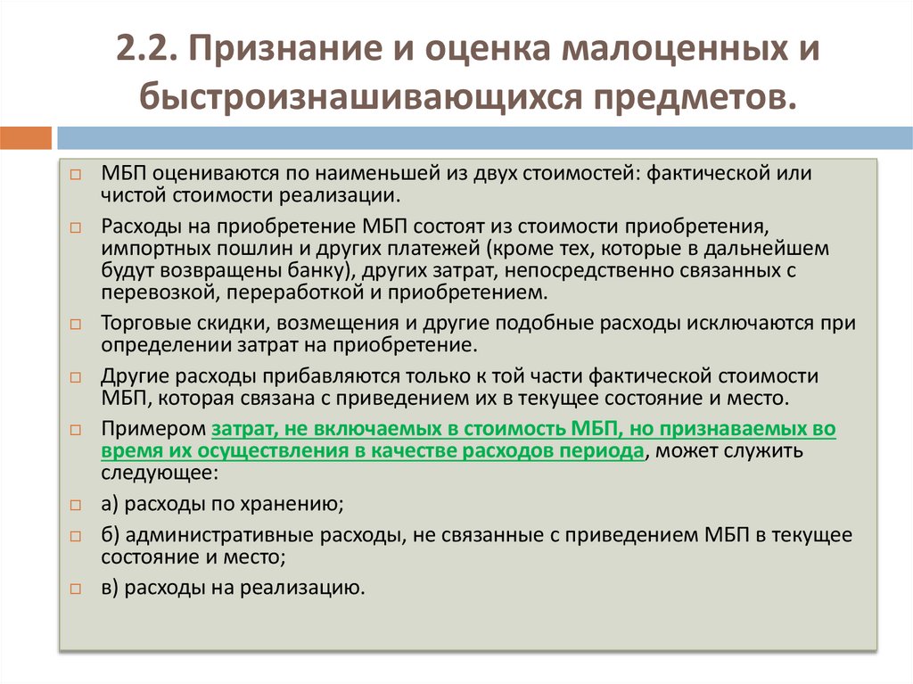 2.2. Признание и оценка малоценных и быстроизнашивающихся