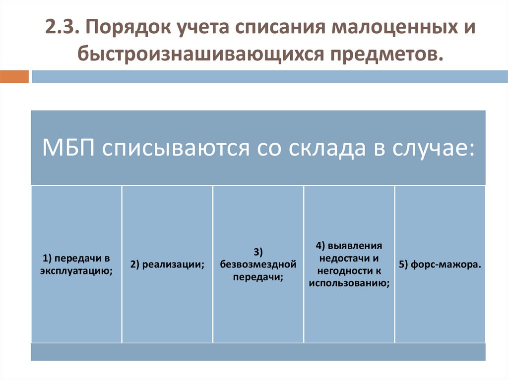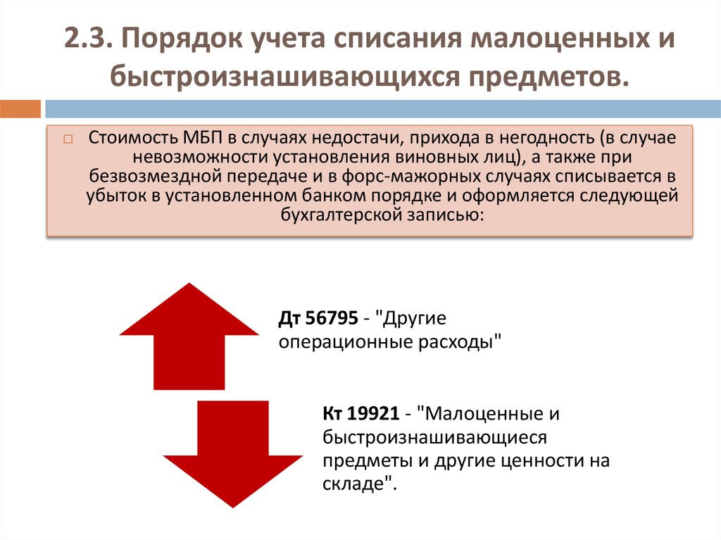 2.3. Порядок учета списания малоценных и быстроизнашивающихся