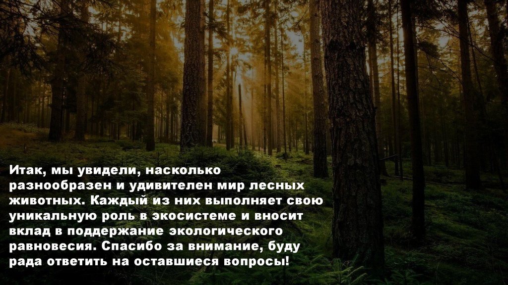 Итак, мы увидели, насколькоразнообразен и удивителен мир лесных