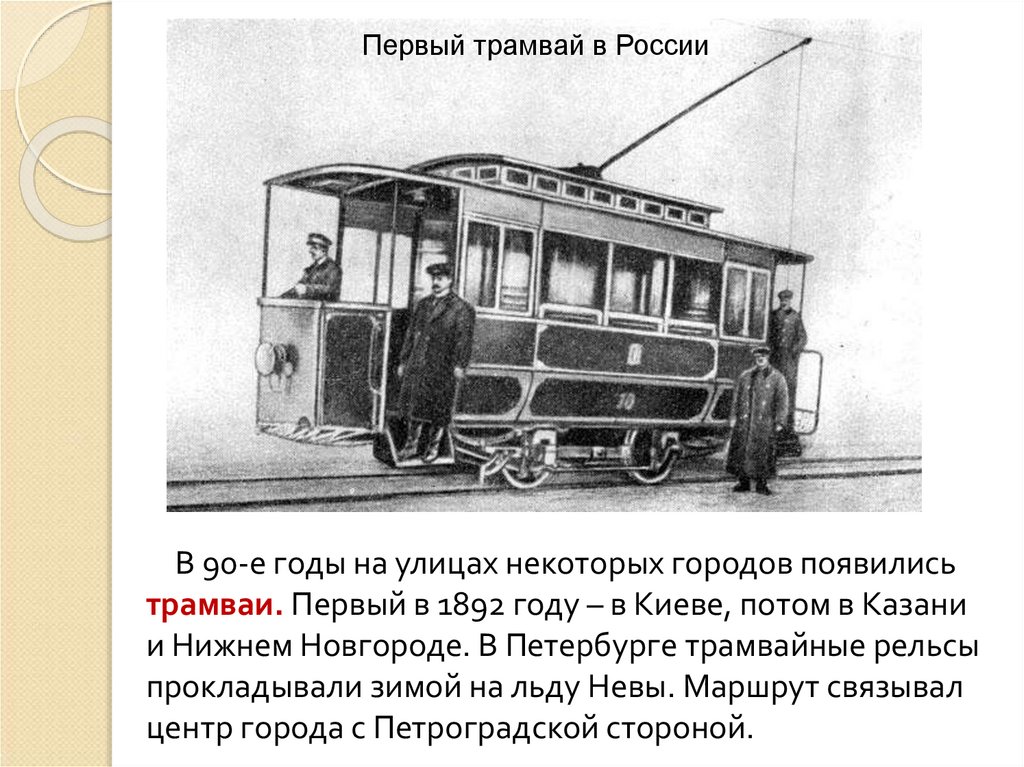 Первый трамвай в РоссииВ 90-е годы на улицах некоторых городов появились