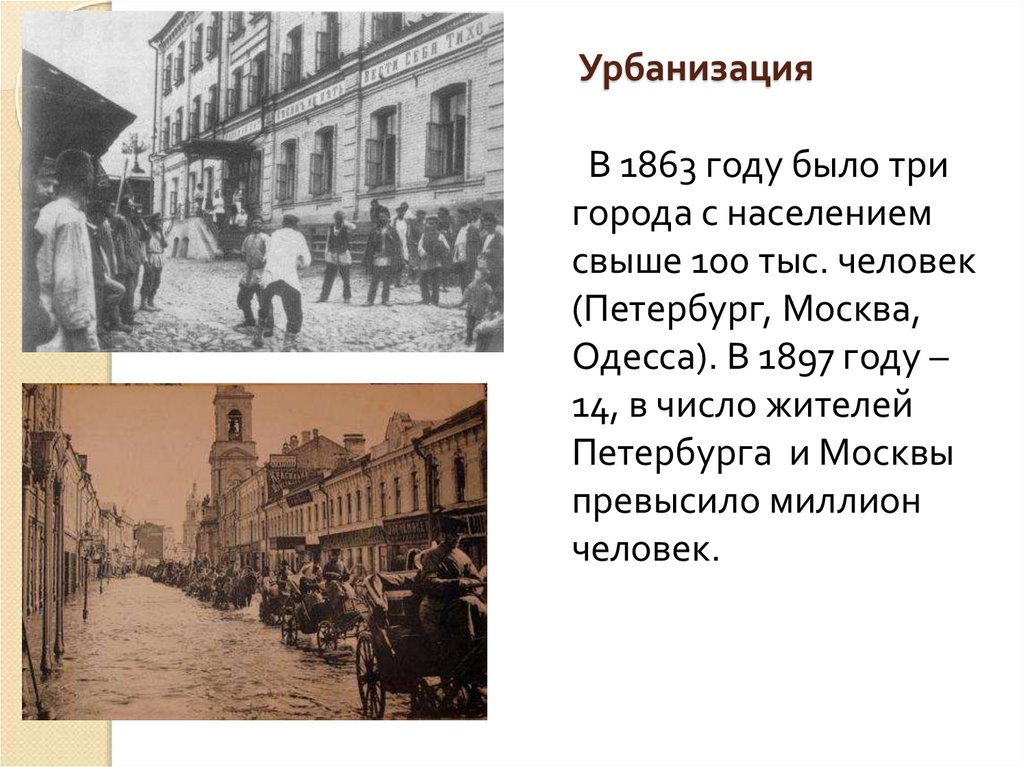 мелкие лавочки. В городах появились большие рабочие окраины,