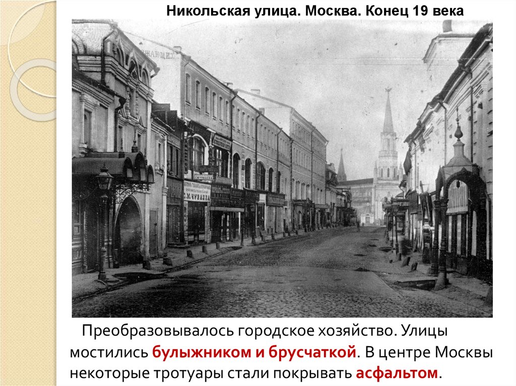 Никольская улица. Москва. Конец 19 векаПреобразовывалось городское хозяйство. Улицы