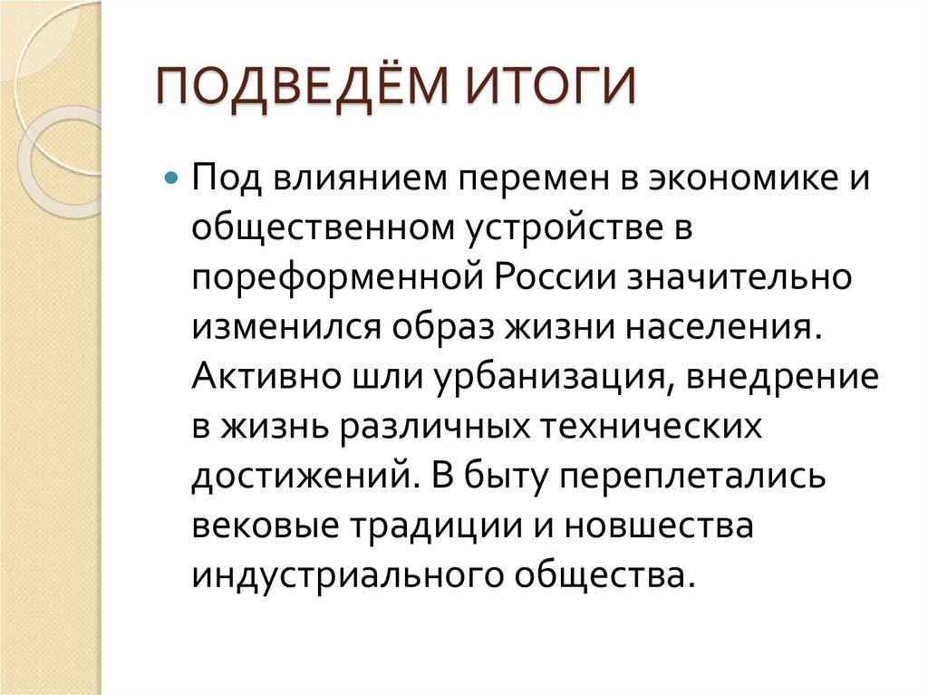 Какие изменения в быту произошливо 2 половине 19 века? С чем это