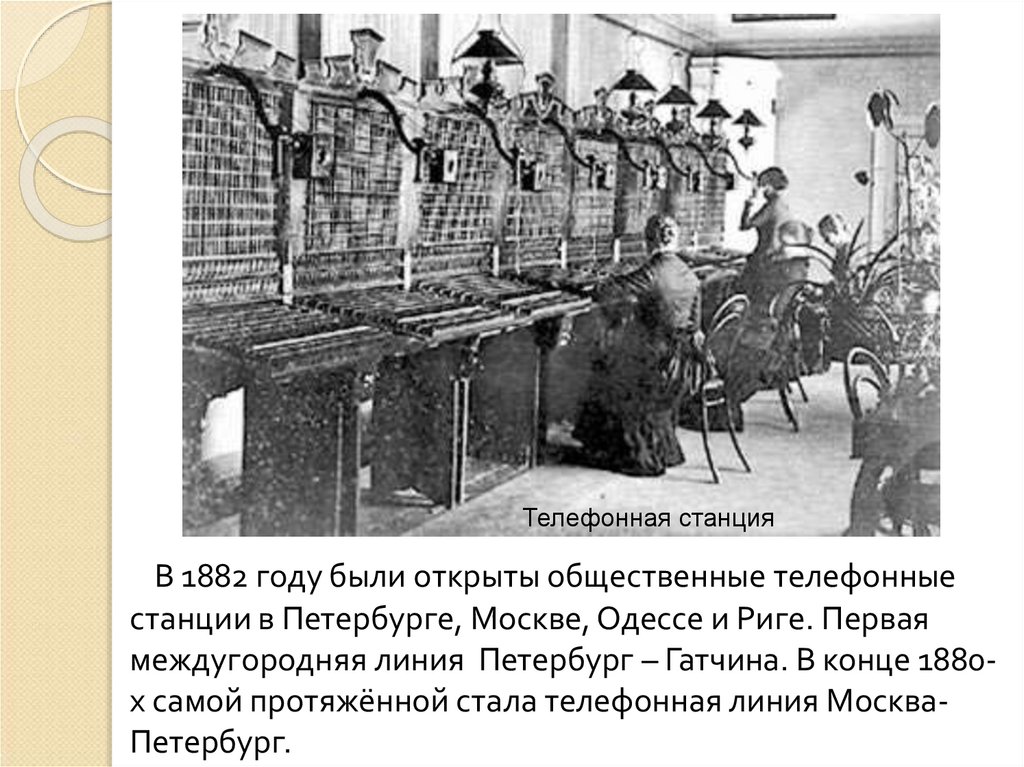 междугородняя линия Петербург – Гатчина. В конце 1880х самой протяжённой стала телефонная линия МоскваПетербург.