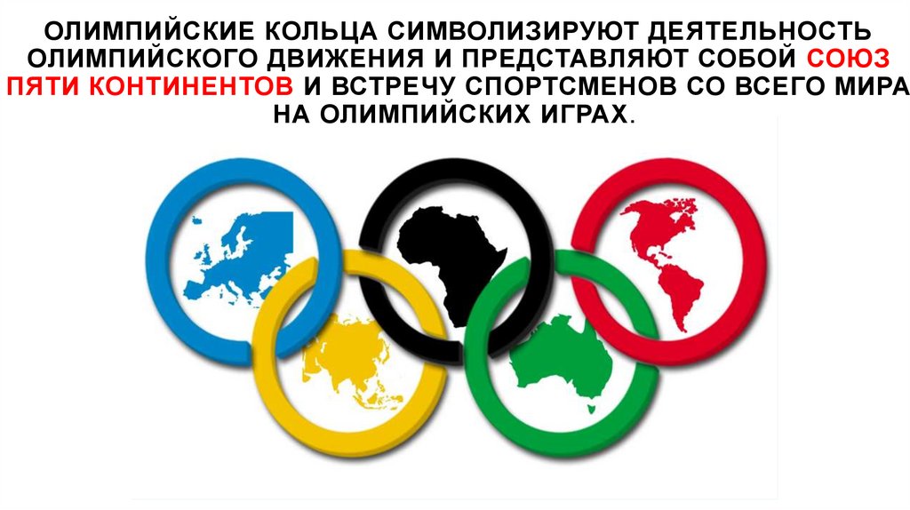 ОЛИМПИЙСКИЕ КОЛЬЦА СИМВОЛИЗИРУЮТ ДЕЯТЕЛЬНОСТЬОЛИМПИЙСКОГО ДВИЖЕНИЯ И ПРЕДСТАВЛЯЮТ СОБОЙ СОЮЗ