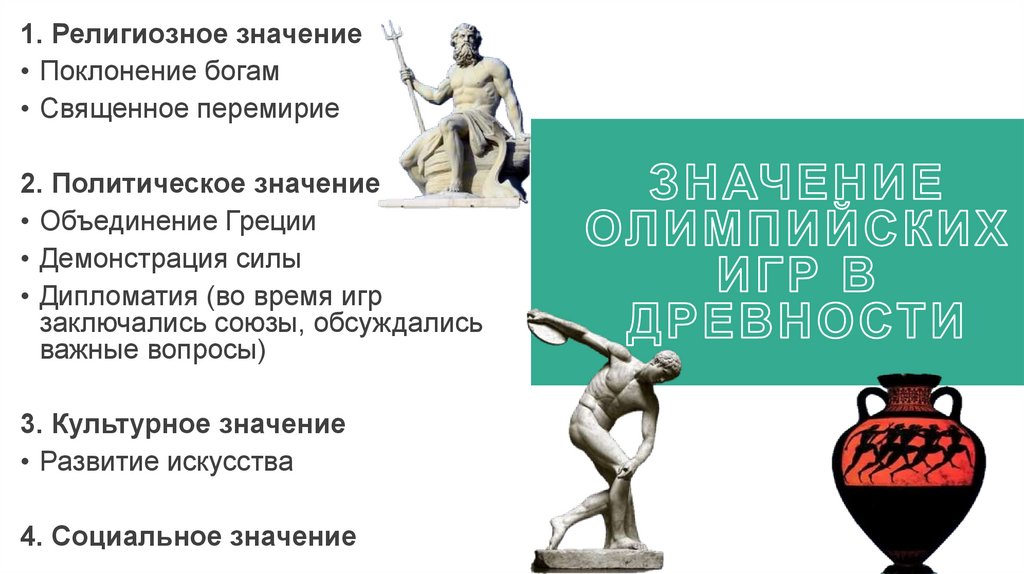 • Олимпийские игры в древности проводились в городе Олимпия,который находился на полуострове Пелопоннес. Эти игры были