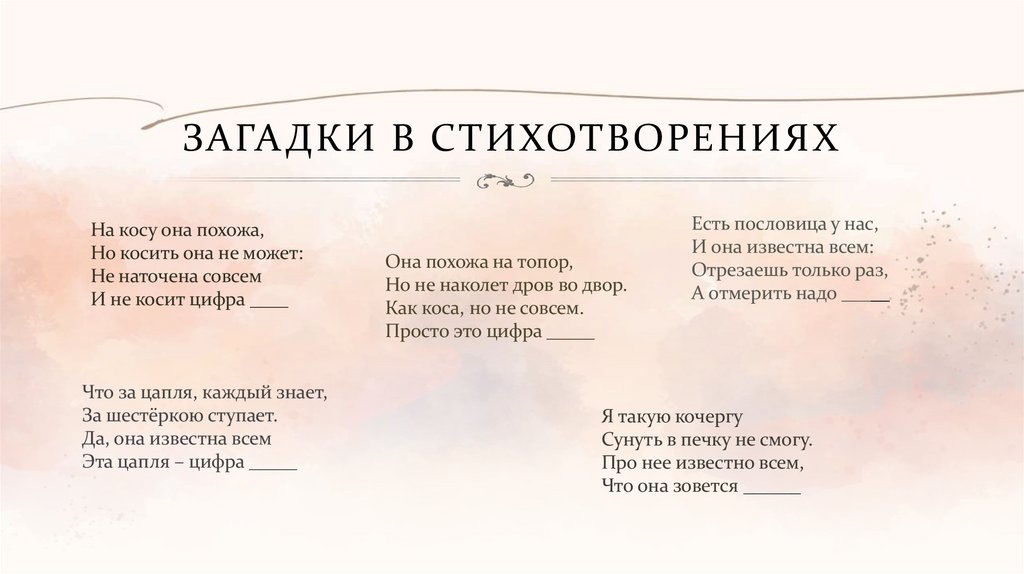 ЗАГА ДКИ В СТИХОТВОРЕНИЯХНа косу она похожа,