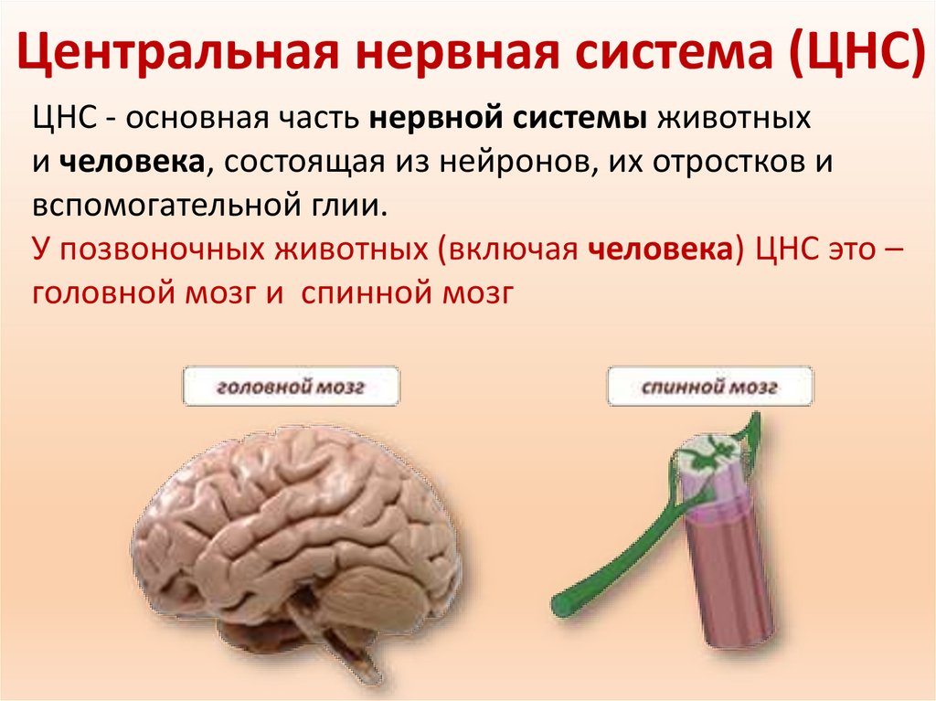 Центральная нервная система (ЦНС)ЦНС - основная часть нервной системы животных