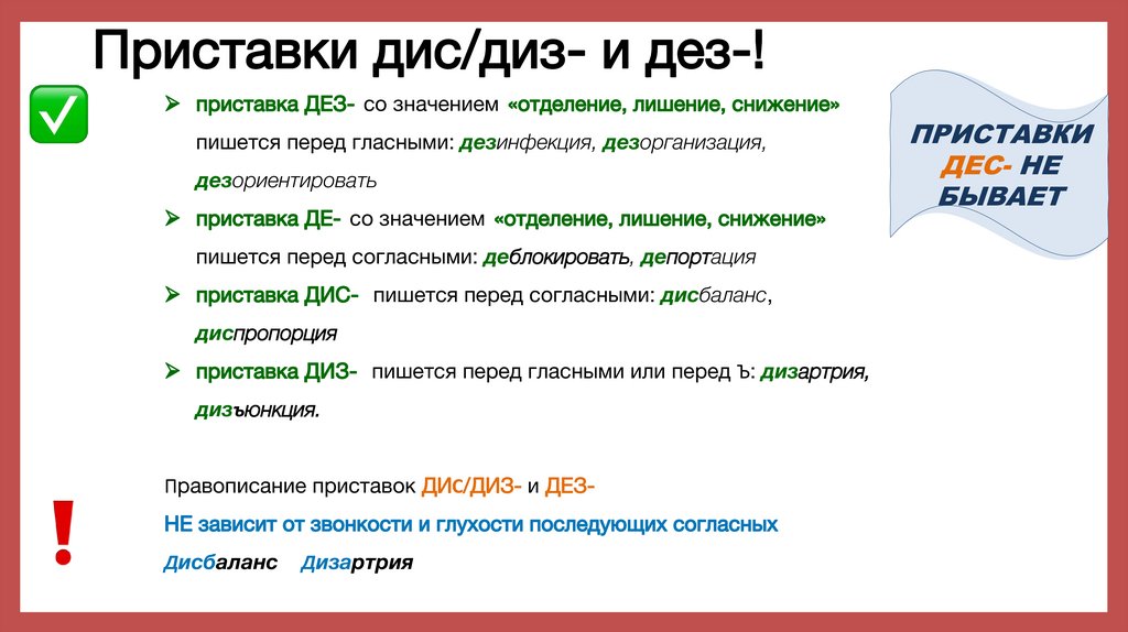 Правописание приставок ДИС/ДИЗ- и ДЕЗ-