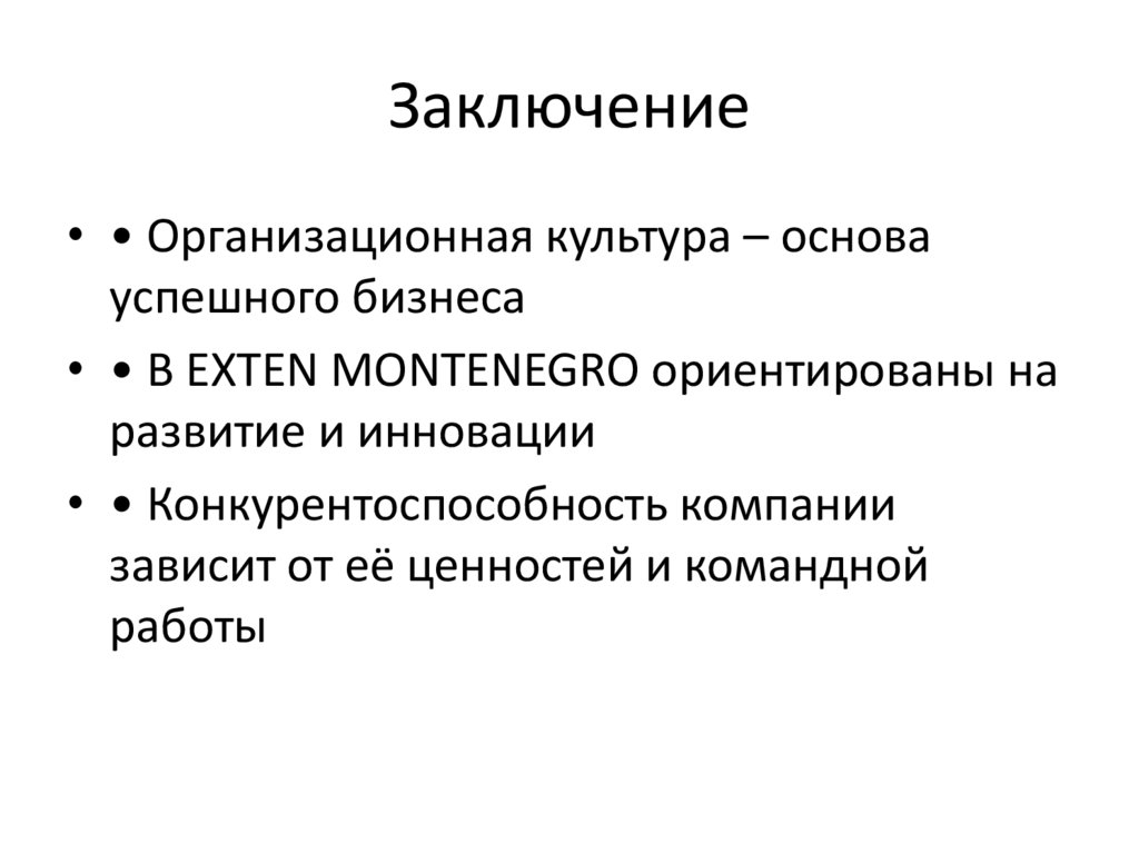 Организационная культура вEXTEN MONTENEGRO