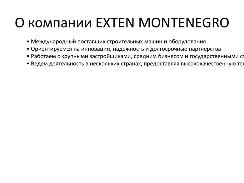 О компании EXTEN MONTENEGRO• Международный поставщик строительных машин и оборудования
