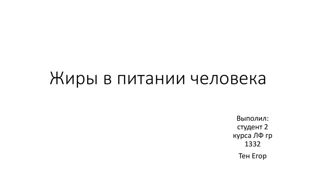 Значение белков, жиров и углеводов в питании человека. Лекция 4-6