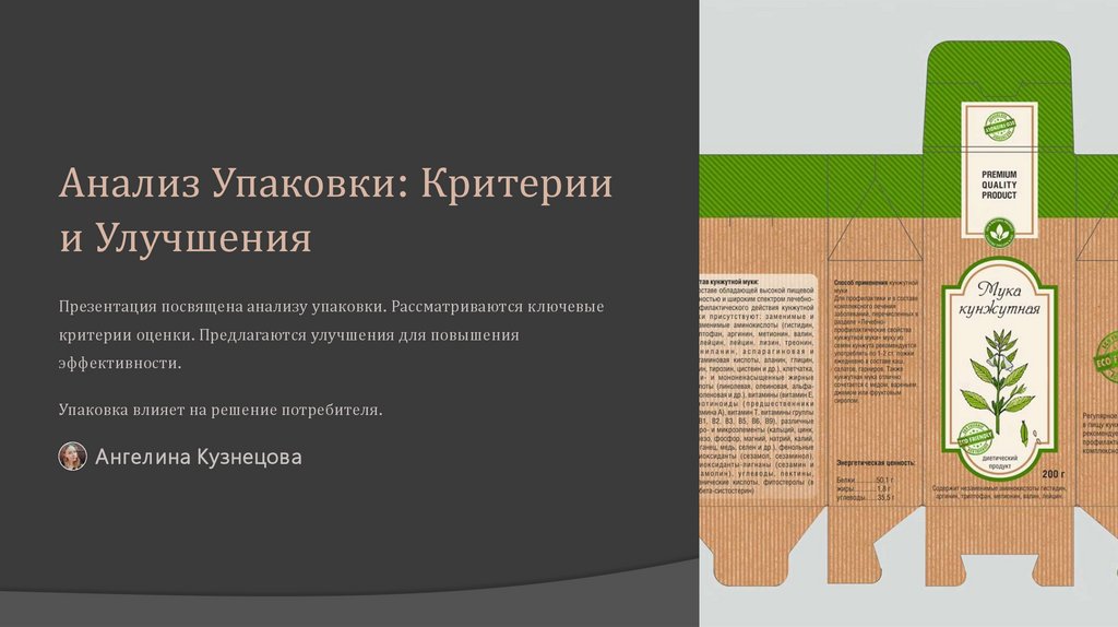 Презентация посвящена анализу упаковки. Рассматриваются ключевые
