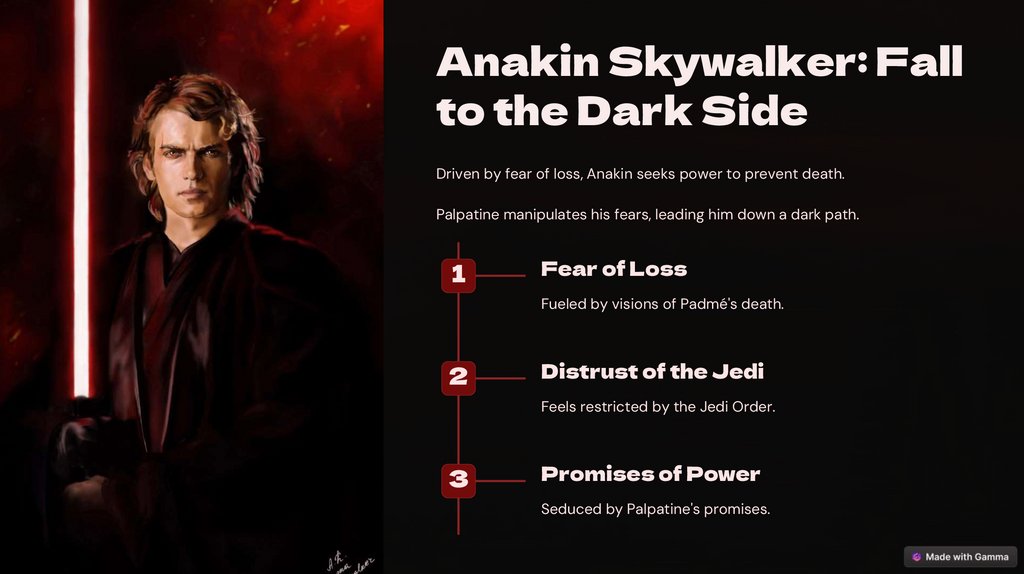 Driven by fear of loss, Anakin seeks power to prevent death.