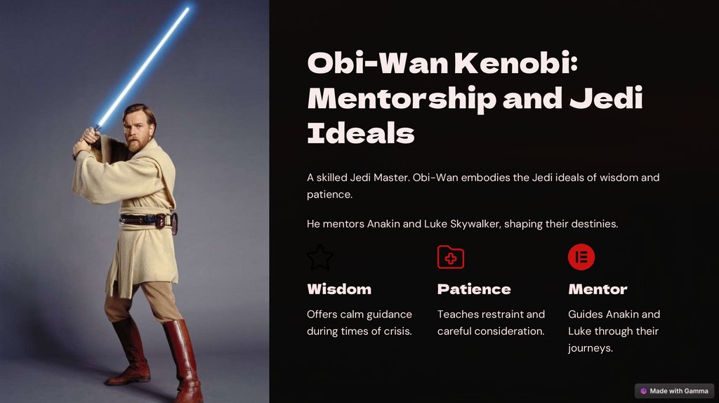 A skilled Jedi Master. Obi-Wan embodies the Jedi ideals of wisdom and