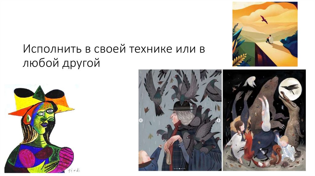 Данную иллюстрацию повторить в разных техниках