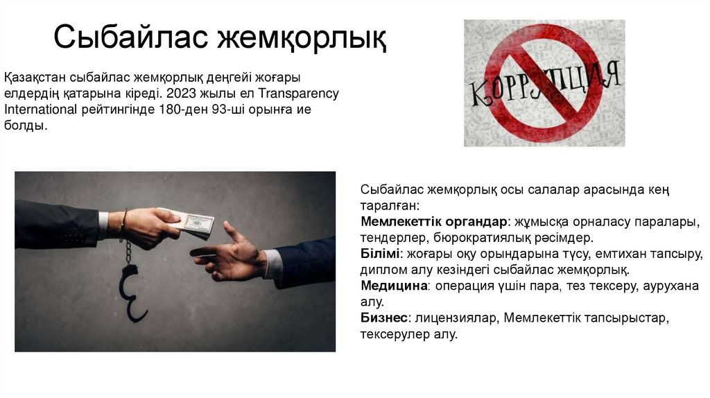 Сыбайлас жемқорлықҚазақстан сыбайлас жемқорлық деңгейі жоғары