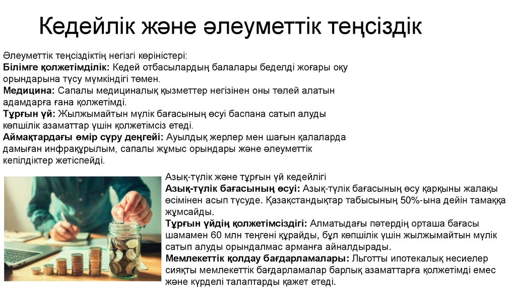 Кедейлік және әлеуметтік теңсіздікӘлеуметтік теңсіздіктің негізгі көріністері: